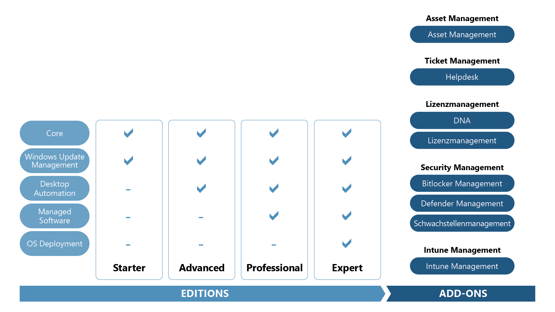 ACMP ist eine modulare Client Management Lösung. Wie Zahnräder greifen die unterschiedlichen ACMP Module ineinander und bieten so einen ganzheitlichen Lösungsansatz für die täglichen Herausforderungen von IT-Abteilungen. Das bedeutet, dass sich durch die Kombination verschiedener Module beeindruckende Synergieeffekte für Ihre IT ergeben.